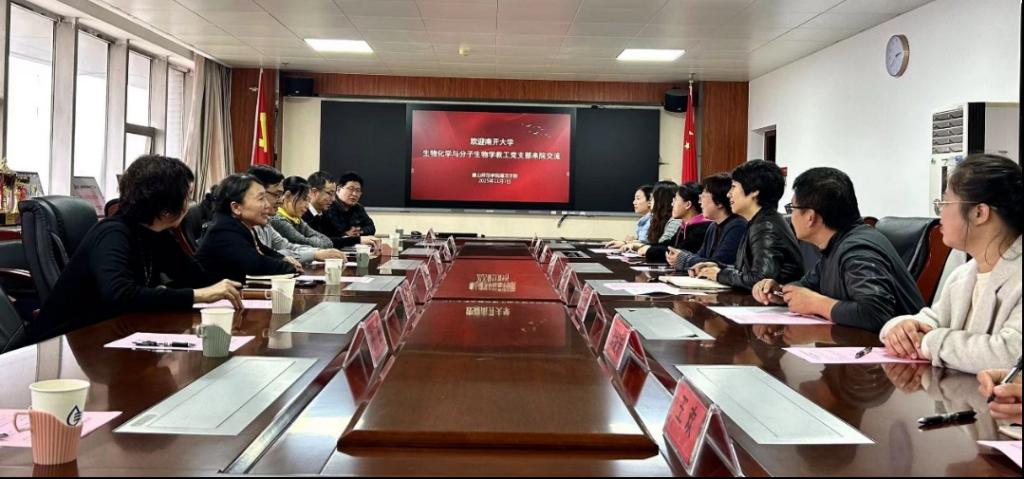 2025年11月7日,南开大学生命科学学院生物化学与分子生物学教工党支部在支部书记王淑芳教授的带领下,一行8人来到唐山师范学院,与海洋学院教工党支部联合开展了一场以“党建引领坚定文化自信 共建互学促进能力”为主题的党日共建交流活动。此次活动旨在通过校际基层党组织的深度互动,探索党建工作与业务工作融合的新路径,共同增强党支部的凝聚力和战斗力,提高育人成效。